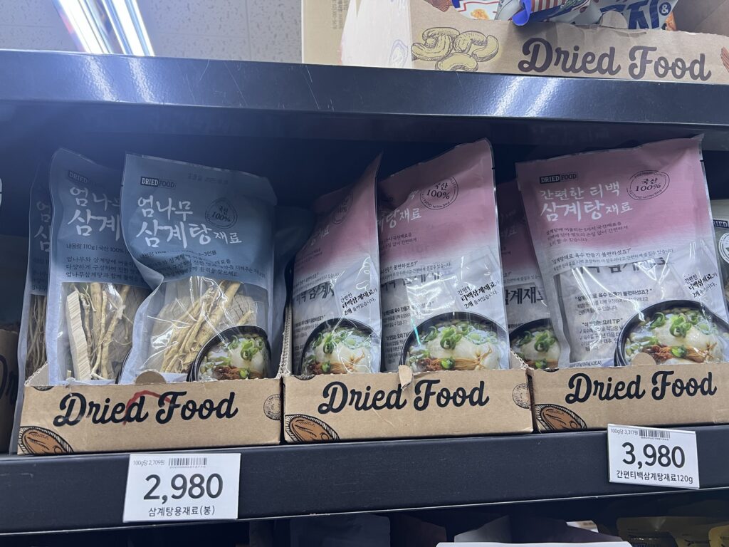 左:参鶏湯の材料 ₩2,980 右:参鶏湯の材料 簡単パック₩3,980