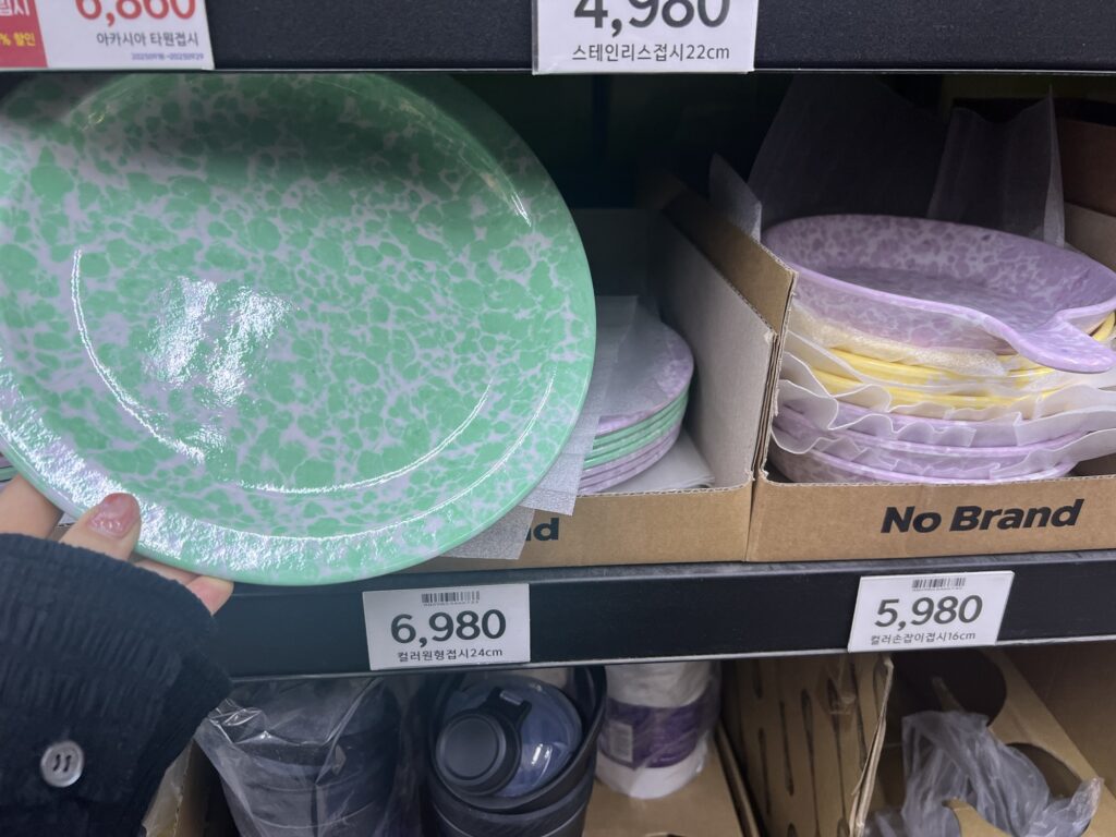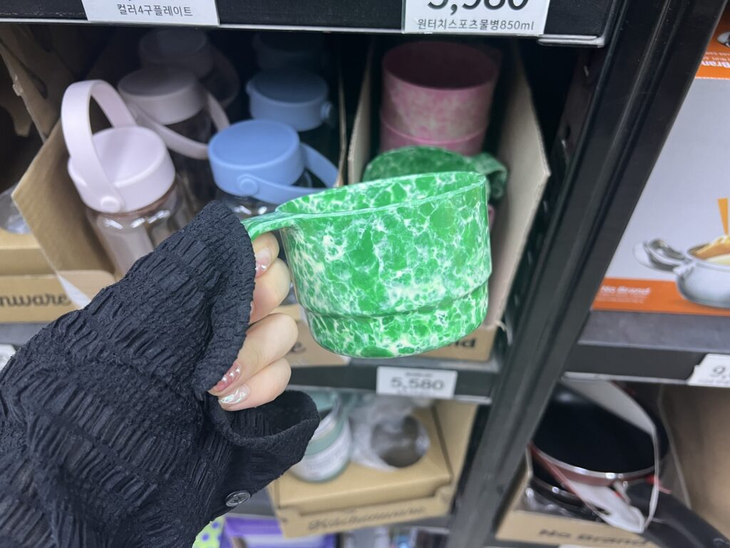 SNSでもよく見かけるスプラッシュ柄のおしゃれ食器。マートでもこんなかわいいものが安く手に入ります!レトロ感とアウトドア感で韓国らしさ100%!