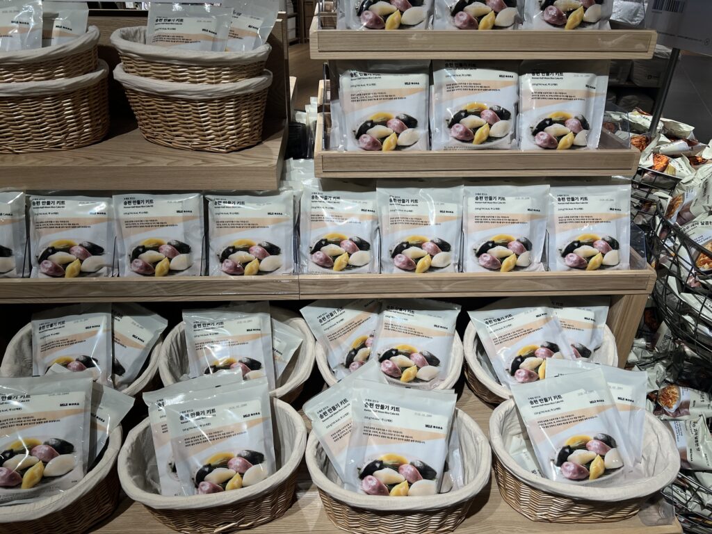 この時期ちょうど추석(韓国のお盆)が近かったこともあり、伝統餅の송편(ソンピョン)を手作りできるキットを発見!本来は家で作る行事食ですが、キット化されているのは新鮮でいいですね♡