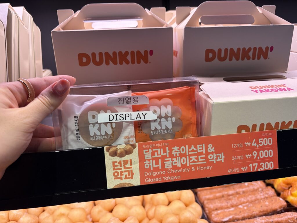 ダンキンドーナッツでは、お土産にぴったりの 伝統菓子の薬菓 や クッキーサンド が売っていました!